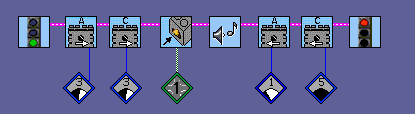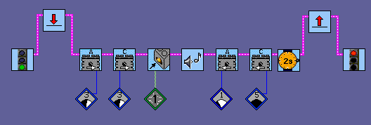 | You will find out that the motors keep on turning, while the little figure in the display of the RCX stops walking. Obviously the program is over, but the motors are still turning. What do you think is the problem? Try to fix it, so that the motors stop when the program ends. |