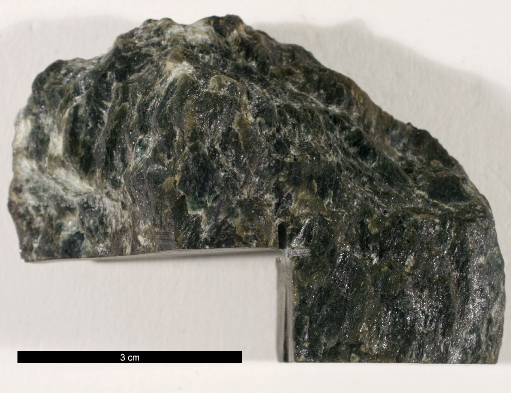 cmSerpentinite_001. Hand sample 1. Cut surface view. Amherst College collection (PR-3-2a).