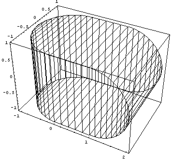 I worked with Stephanie Jakus and Professor O’Rourke on D-forms which are convex 3D objects constructed as follows. From two identical race-track shaped pieces of paper, we picked a random point on the edge of each. Then we glued these 2 points together, and “zipped” close the remainder of the race-track perimeters. The creased edge of this newly formed object is a closed curve in 3D that we have been studying. It is in general an unsolved problem to compute the shape of a D-form curve in space. The figure below (as shown to the right) shows the simplest D-form possible, where (as shown to the left) the midpoint of a circular arc of one racetrack is glued to the midpoint of one straight segment of the other racetrack. We partitioned this curve into three parts: straight touching straight, curve touching straight, and curve touching curve. Using the definition of Gaussian curvature as angle deficit, we proved that the Gaussian curvature for straight-straight parts is 0. Because Gaussian curvature is intrinsic, we used a D-form that had no curve-curve part to study the curve-straight parts. We knew that integral of Gaussian curvature over the whole curve is 4 p by the Gauss-Bonnet theorem, and since there are four identical straight-curve parts, we concluded that the curvature for each point on those parts must be 1. Using the same logic combining with the notions of angle deficits, we also showed that the curvature at any point on the curve-curve parts must be 2. Thus we now know the distribution of Gaussian curvature over the whole surface, for it must be zero at every point not on the curve. The straight-straight parts on D-forms lead us to question: if we glue two rectangular pieces of paper together along a common edge, does that edge have to be a straight line in space? We proved that that was the case when the tangent planes of the two surfaces of any point on that edge do not coincide. (Supported by the National Science Foundation.)